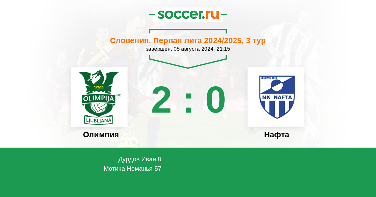 Протокол матча Олимпия против Нафта