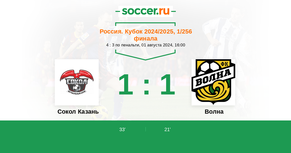 Протокол матча Сокол Казань против Волна