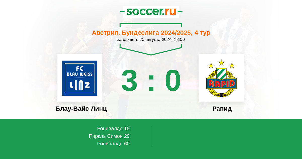 Протокол матча Блау-Вайс Линц против Рапид