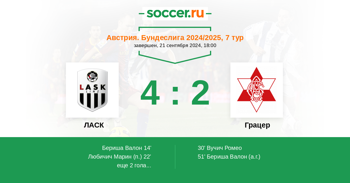 Протокол матча ЛАСК против Грацер