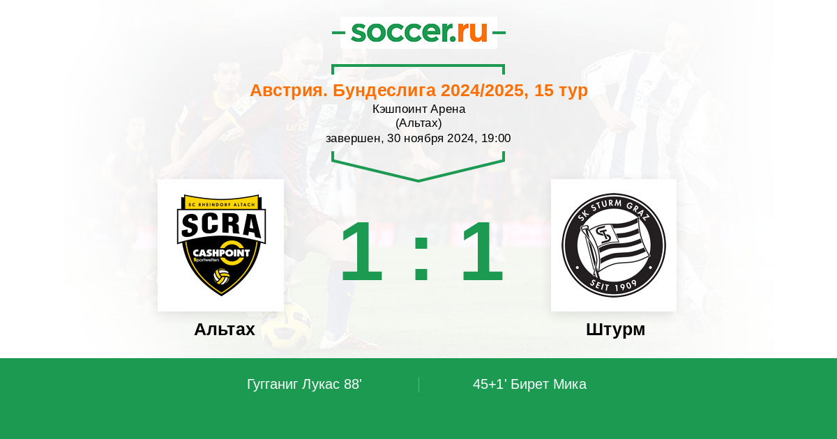 Протокол матча Альтах против Штурм