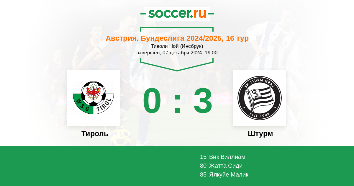 Протокол матча Тироль против Штурм