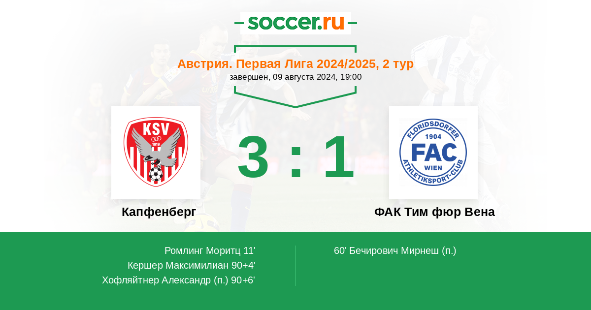 Протокол матча Капфенберг против ФАК Тим фюр Вена
