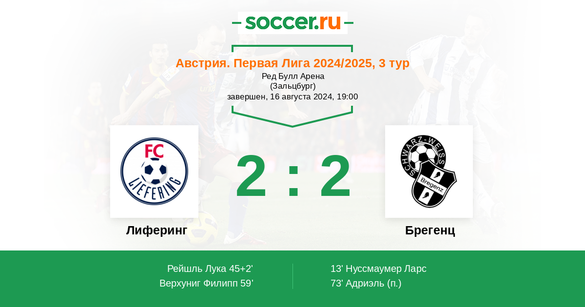 Протокол матча Лиферинг против Брегенц