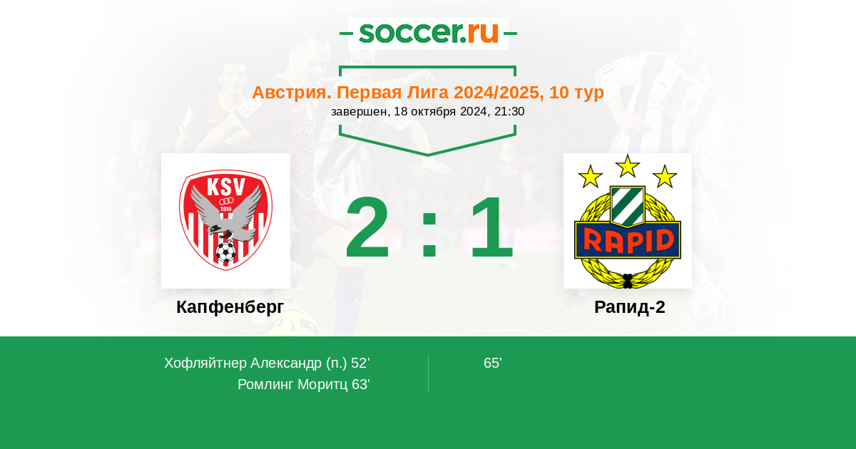 Протокол матча Капфенберг против Рапид-2