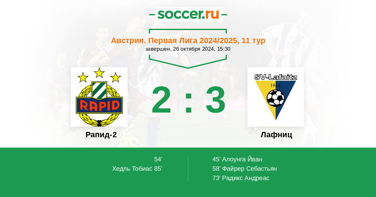 Протокол матча Рапид-2 против Лафниц