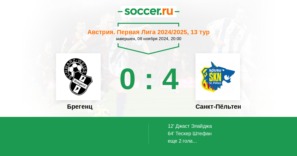 Протокол матча Брегенц против Санкт-Пёльтен