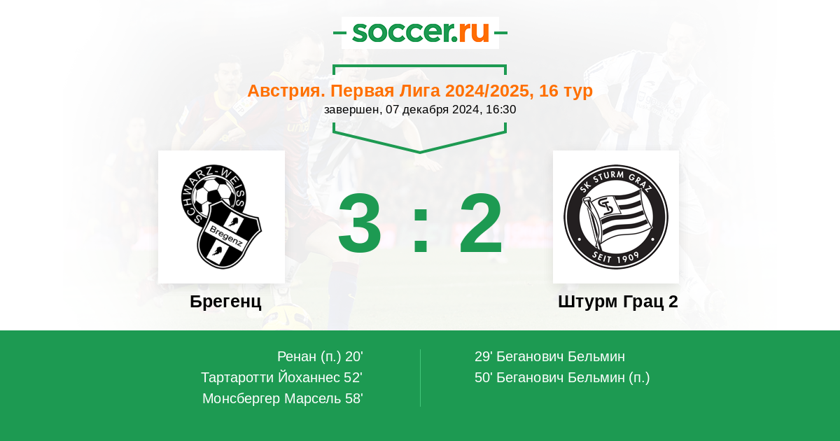 Протокол матча Брегенц против Штурм Грац 2