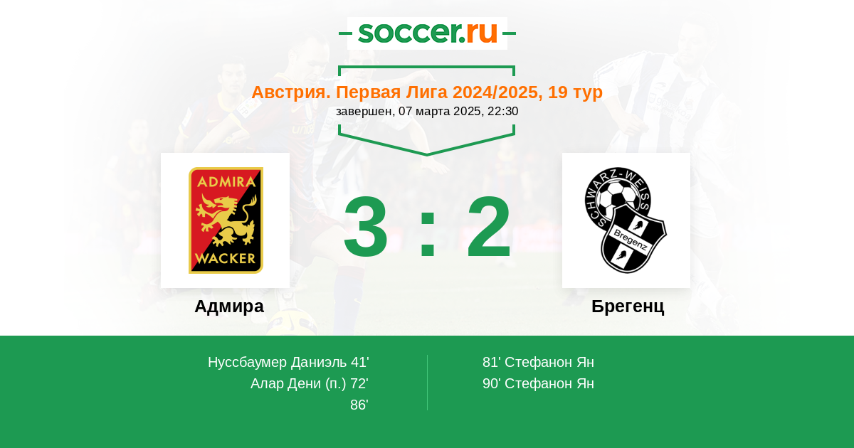 Протокол матча Адмира против Брегенц