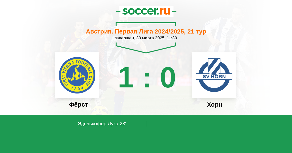 Протокол матча Фёрст против Хорн
