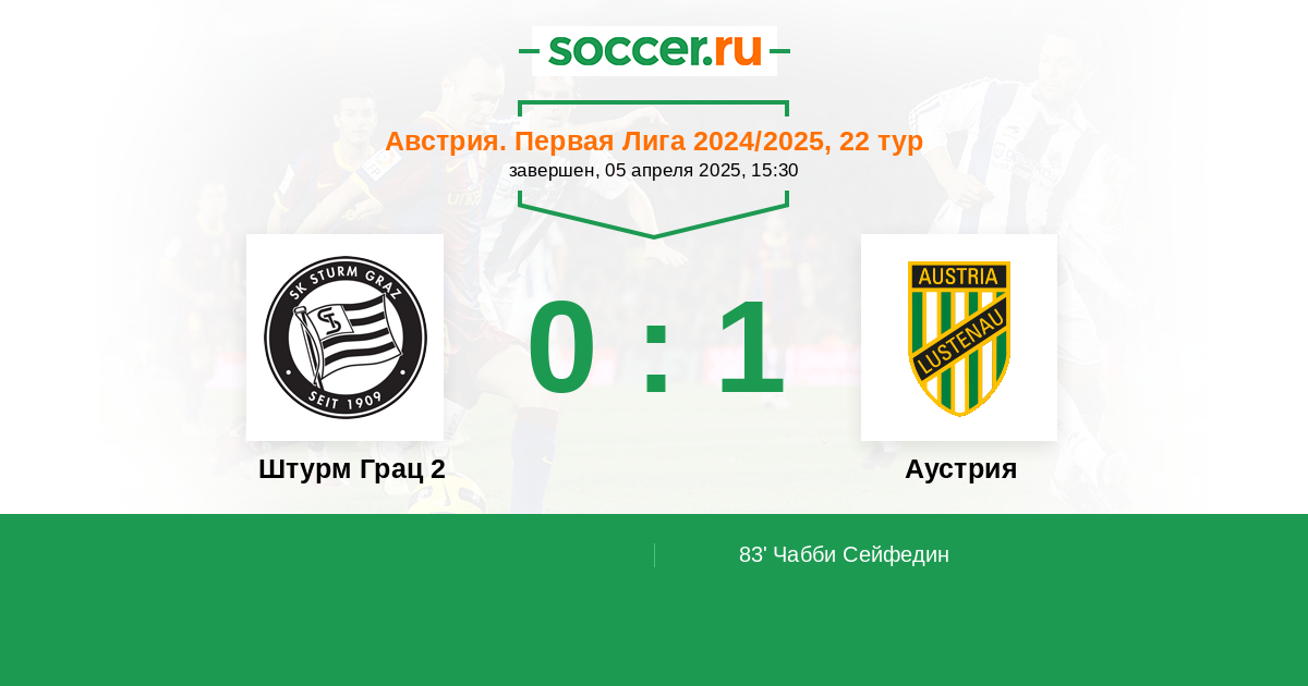 Протокол матча Штурм Грац 2 против Аустрия