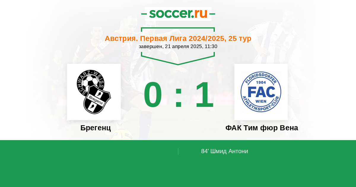 Протокол матча Брегенц против ФАК Тим фюр Вена