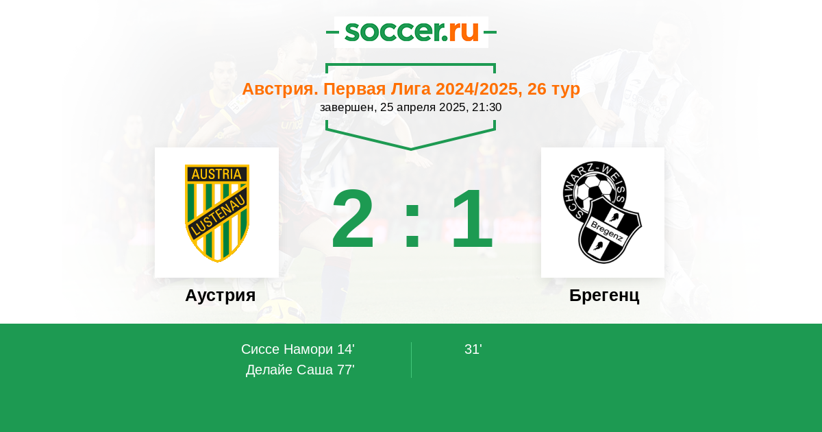 Протокол матча Аустрия против Брегенц