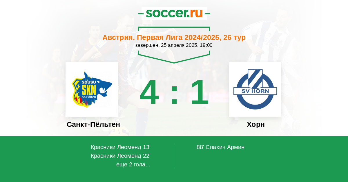 Протокол матча Санкт-Пёльтен против Хорн