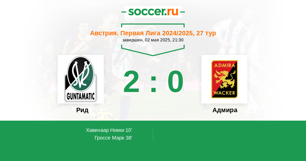 Протокол матча Рид против Адмира