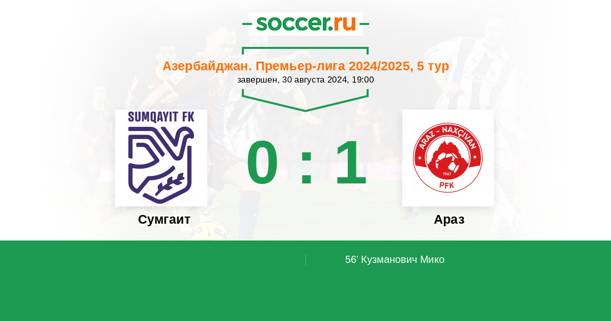 Протокол матча Сумгаит против Араз