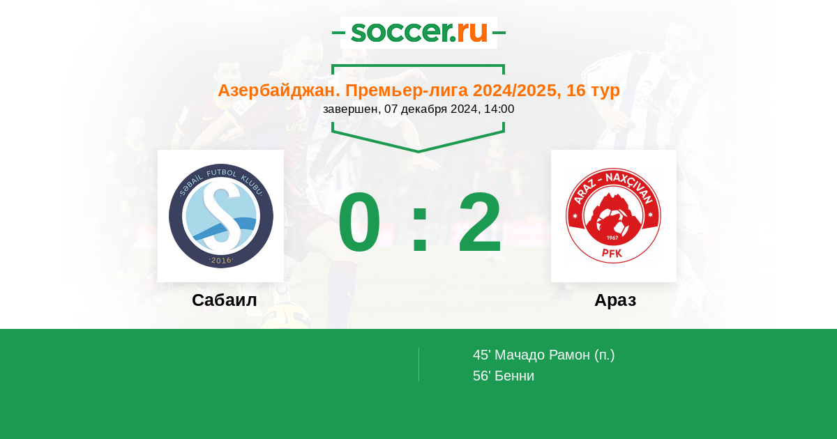 Протокол матча Сабаил против Араз