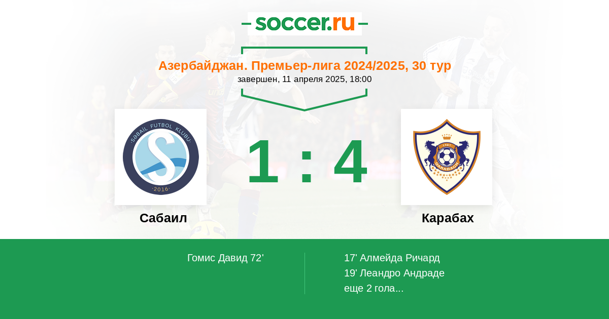 Протокол матча Сабаил против Карабах