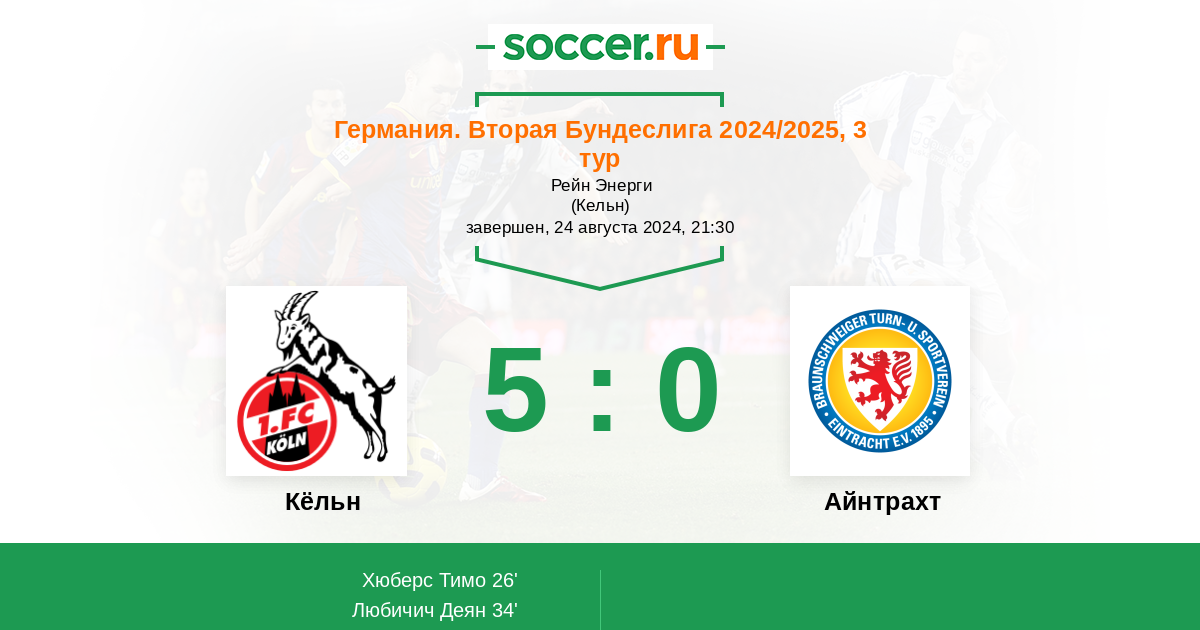 Протокол матча Кёльн против Айнтрахт