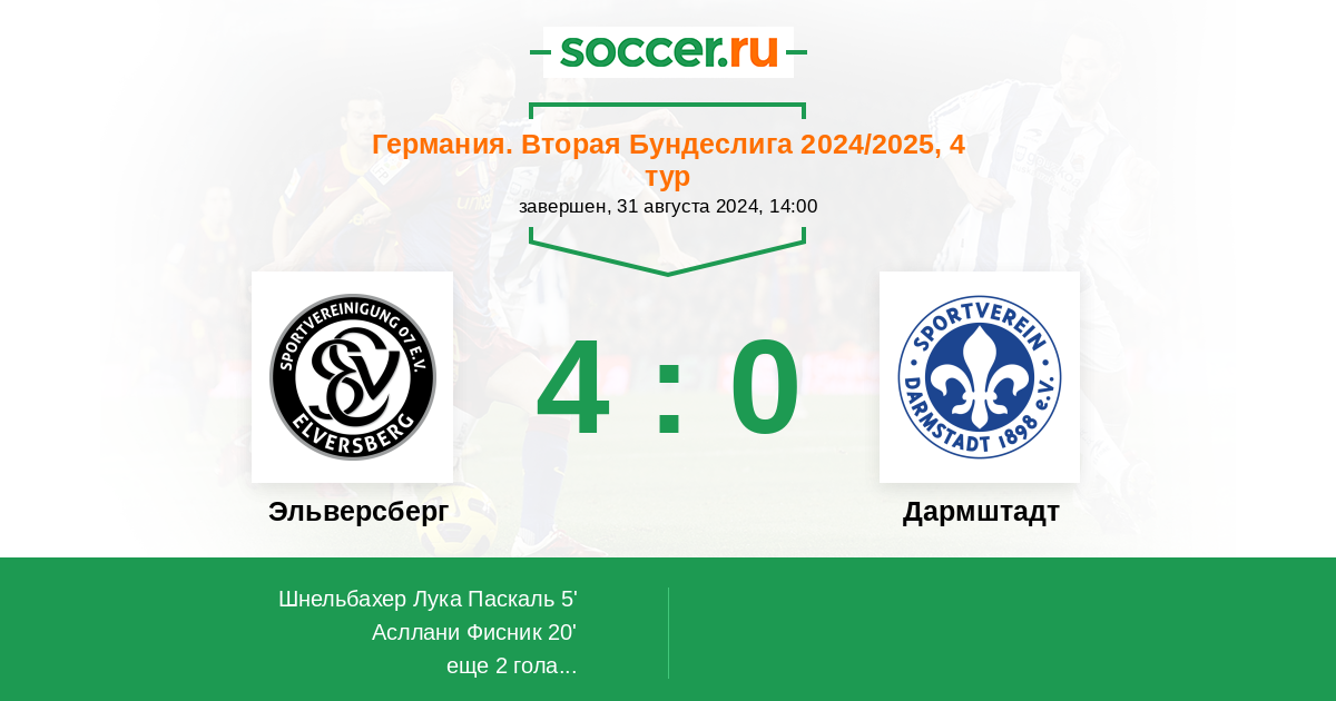 Протокол матча Эльверсберг против Дармштадт