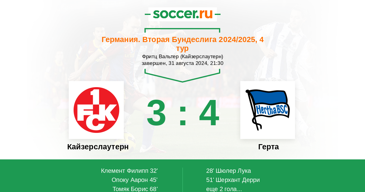 Протокол матча Кайзерслаутерн против Герта