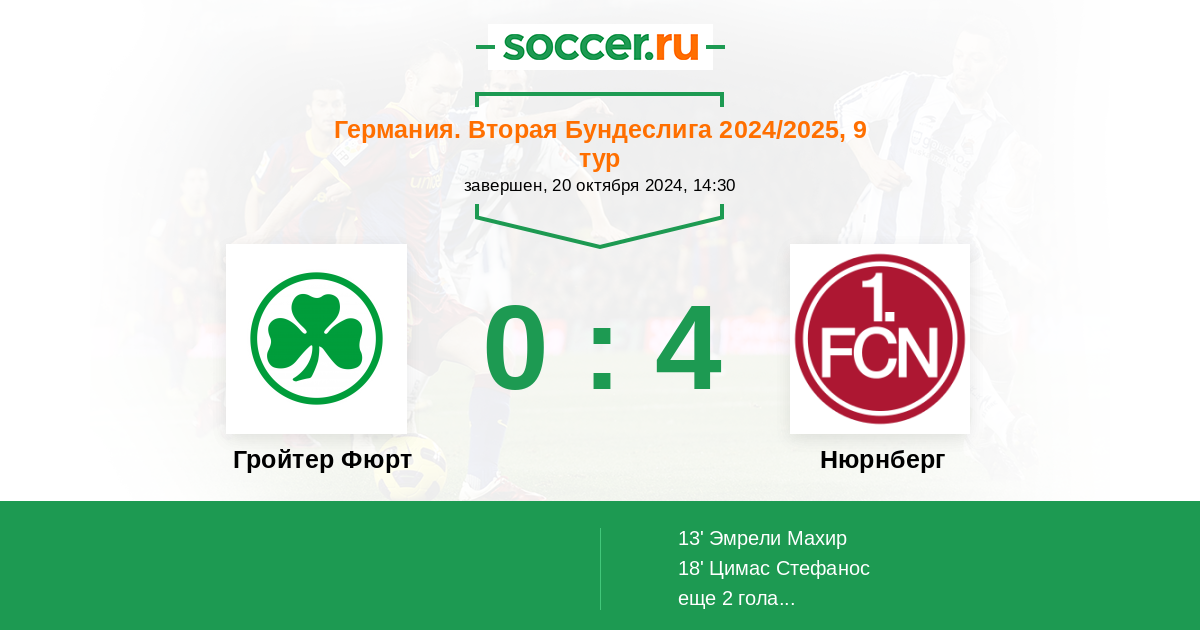 Протокол матча Гройтер Фюрт против Нюрнберг