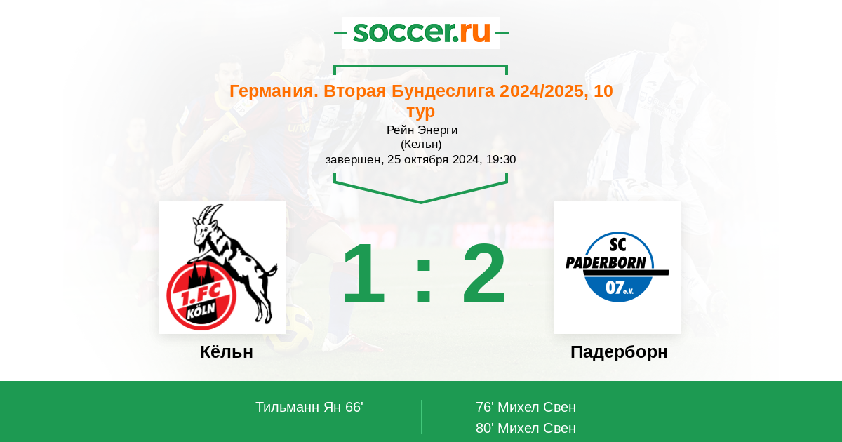 Протокол матча Кёльн против Падерборн
