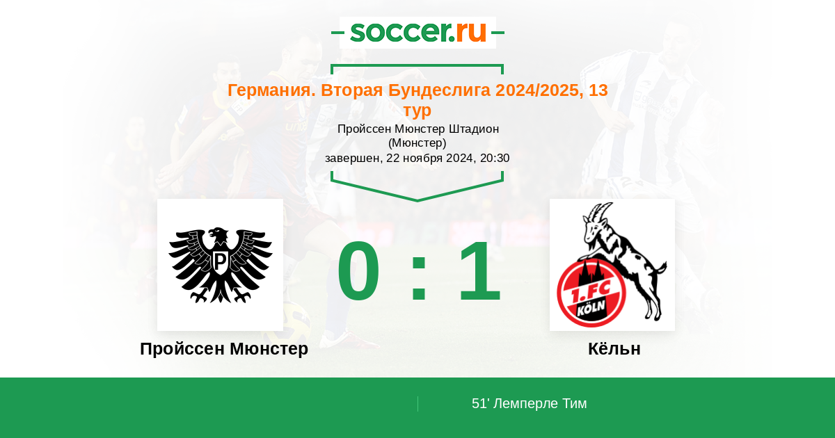 Протокол матча Пройcсен Мюнстер против Кёльн