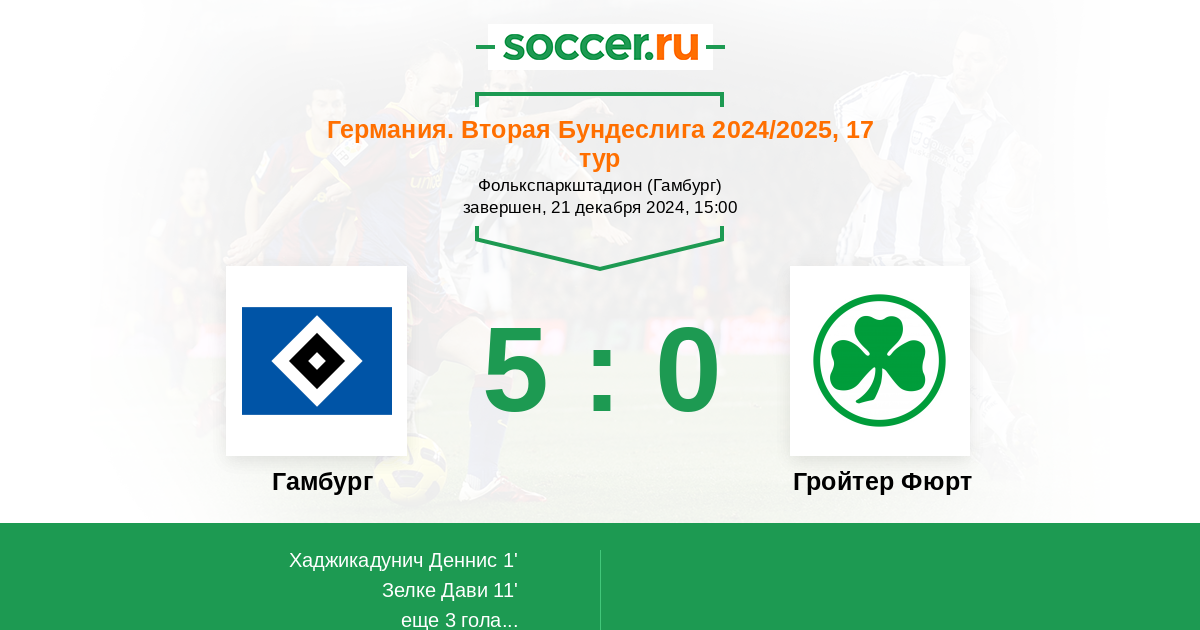 Протокол матча Гамбург против Гройтер Фюрт