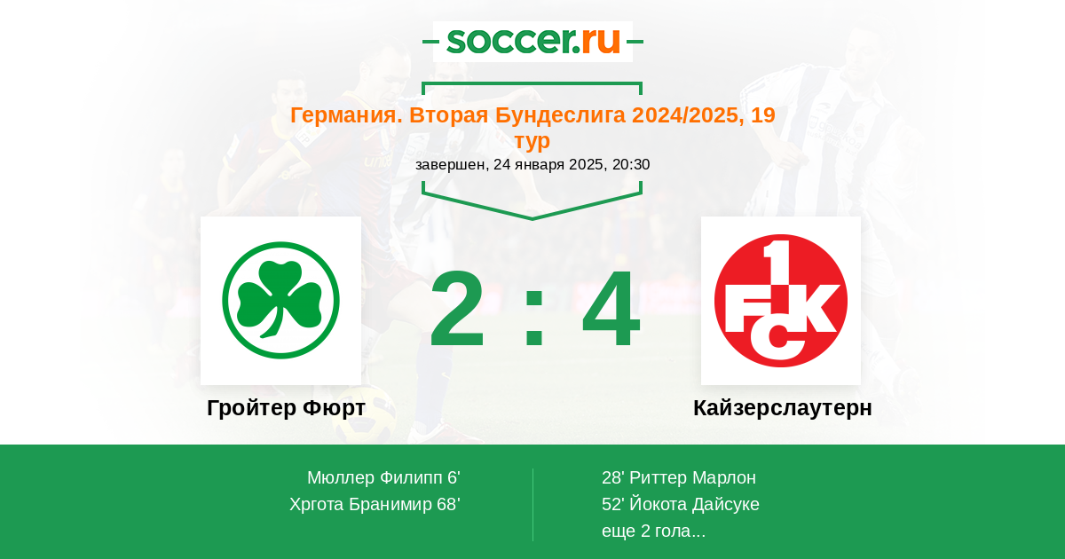 Протокол матча Гройтер Фюрт против Кайзерслаутерн