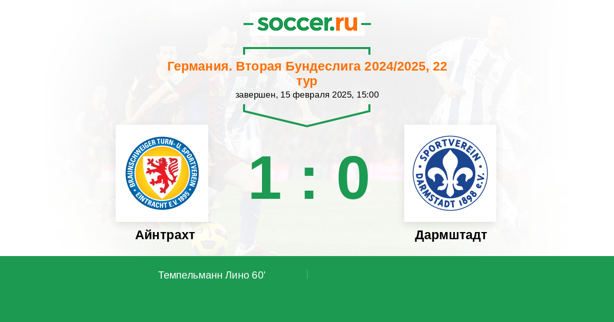 Протокол матча Айнтрахт против Дармштадт