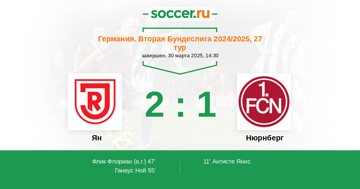 Протокол матча Ян против Нюрнберг