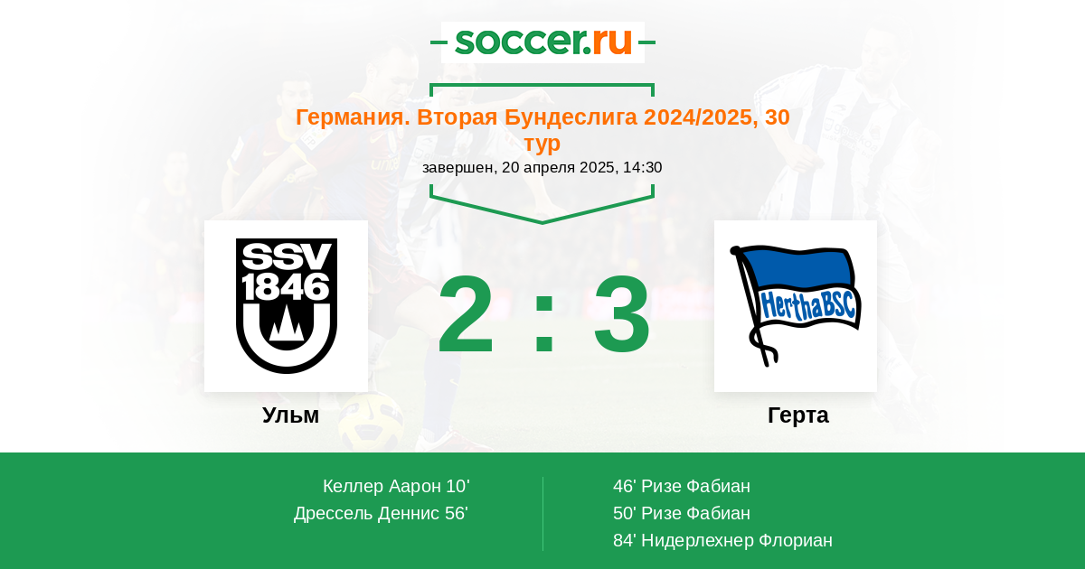 Протокол матча Ульм против Герта