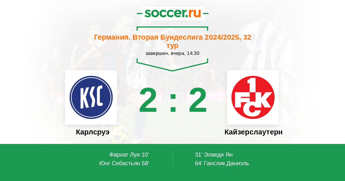 Протокол матча Карлсруэ против Кайзерслаутерн