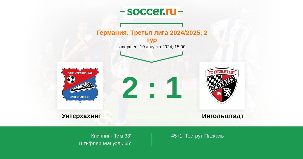 Протокол матча Унтерхахинг против Ингольштадт