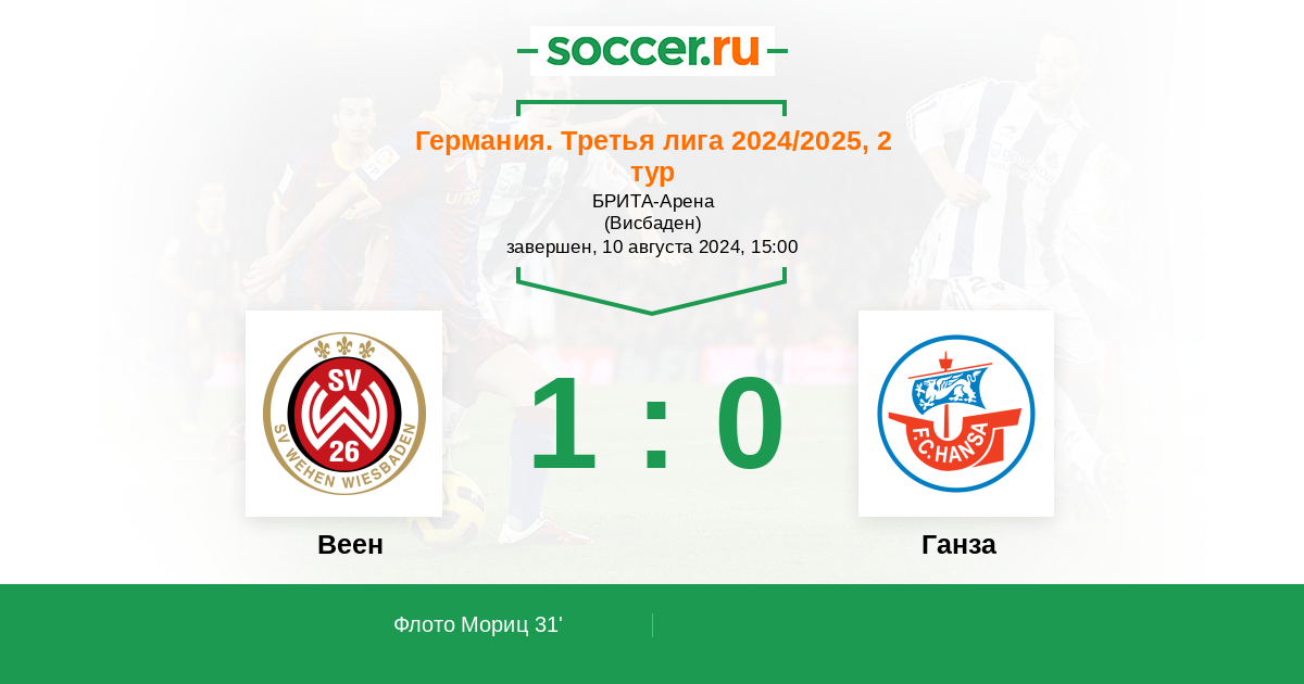 Протокол матча Веен против Ганза