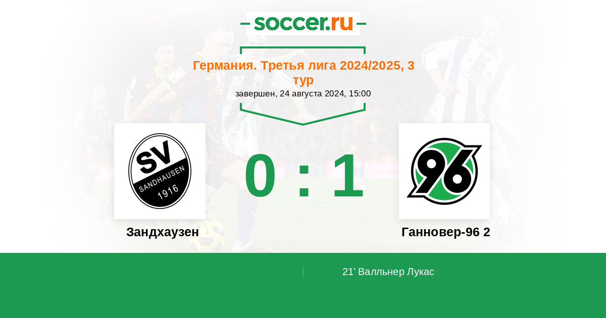 Протокол матча Зандхаузен против Ганновер-96 2