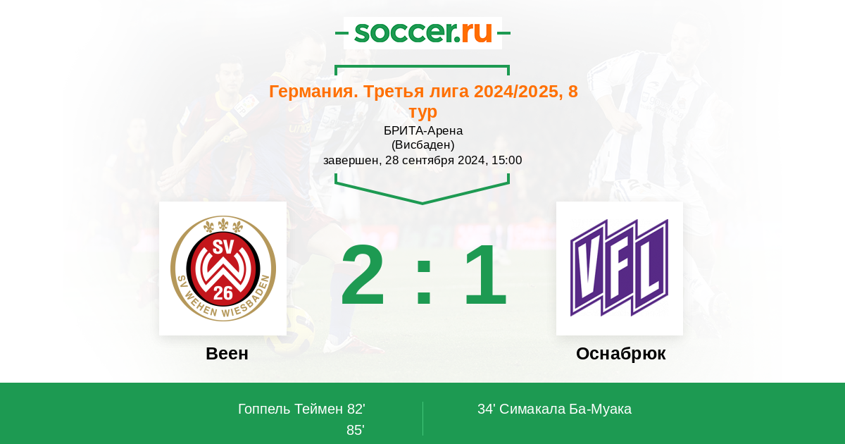 Протокол матча Веен против Оснабрюк