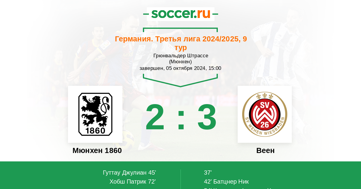 Протокол матча Мюнхен 1860 против Веен