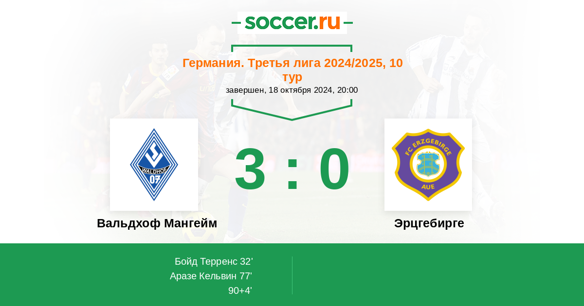 Протокол матча Вальдхоф Мангейм против Эрцгебирге