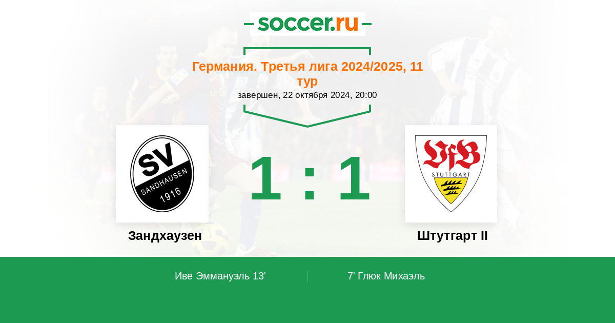 Протокол матча Зандхаузен против Штутгарт II