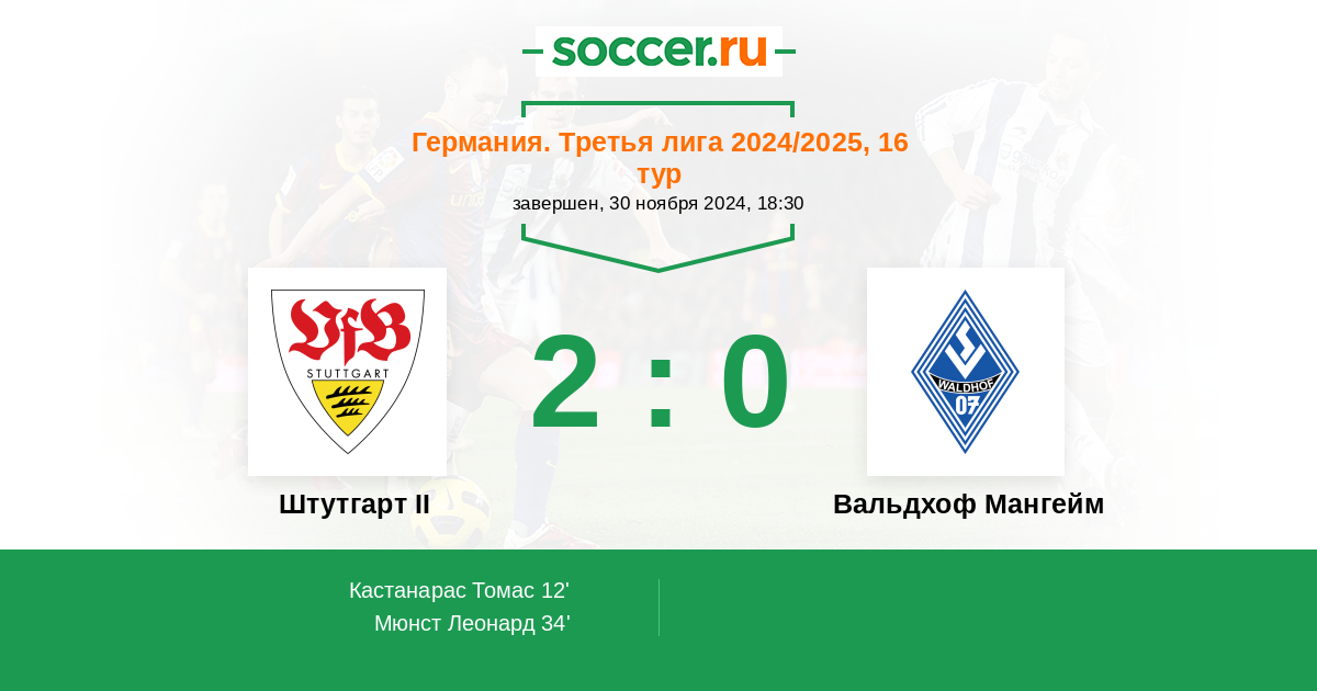 Протокол матча Штутгарт II против Вальдхоф Мангейм