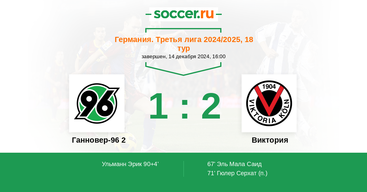 Протокол матча Ганновер-96 2 против Виктория