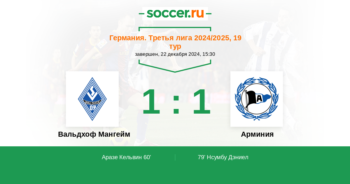 Протокол матча Вальдхоф Мангейм против Арминия
