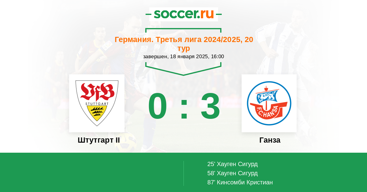 Протокол матча Штутгарт II против Ганза