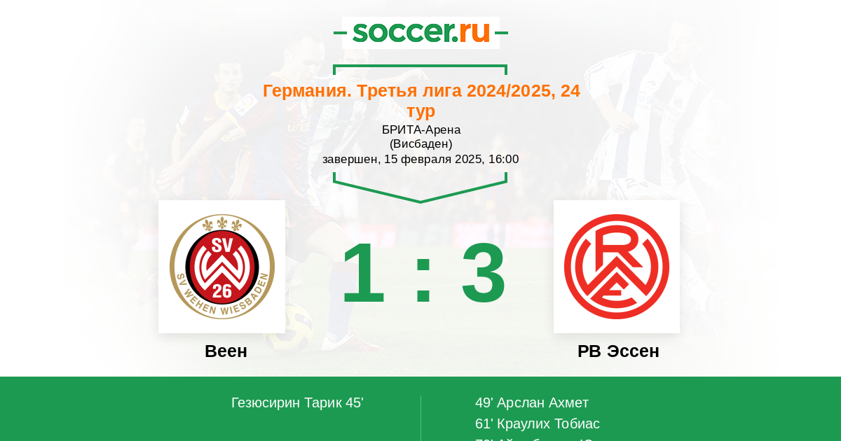 61' (1:2) Краулих Тобиас (33) (Арслан Ахмет (6))