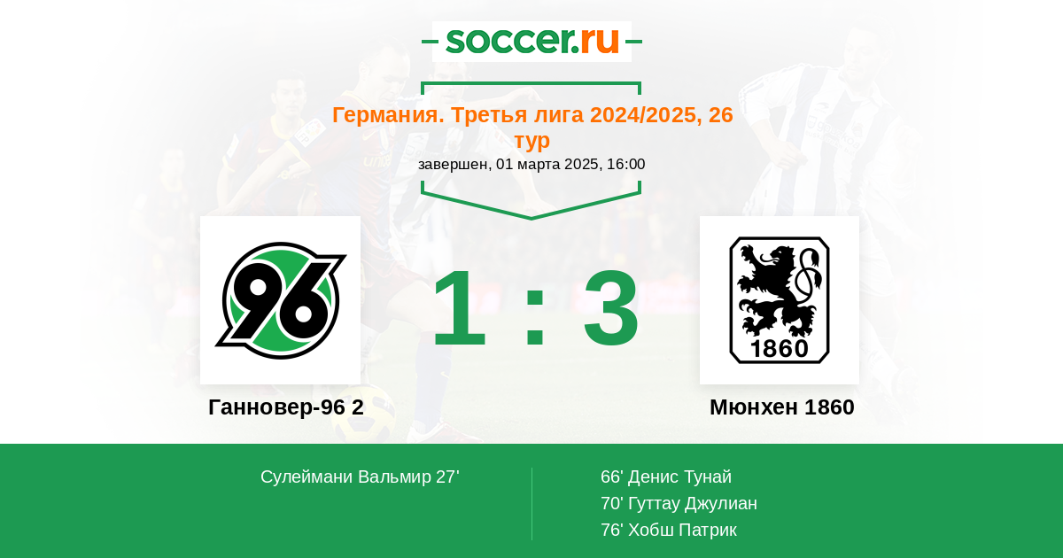 Протокол матча Ганновер-96 2 против Мюнхен 1860