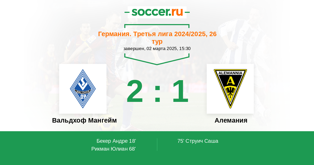 68' (2:0) Рикман Юлиан (21) (Бекер Андре (39))
