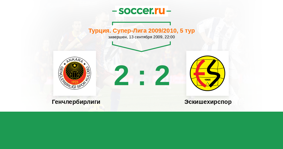 Турция. Суперлига 14.08.2010 Эскишехирспор Логотип футбольный клуб Эскишехирспор 0:0 Логотип футбольный клуб Генчлербирлиги (Анкара) Генчлербирлиги