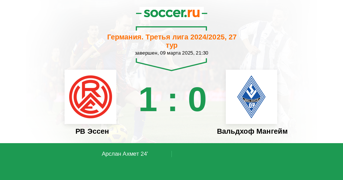 Протокол матча РВ Эссен против Вальдхоф Мангейм